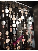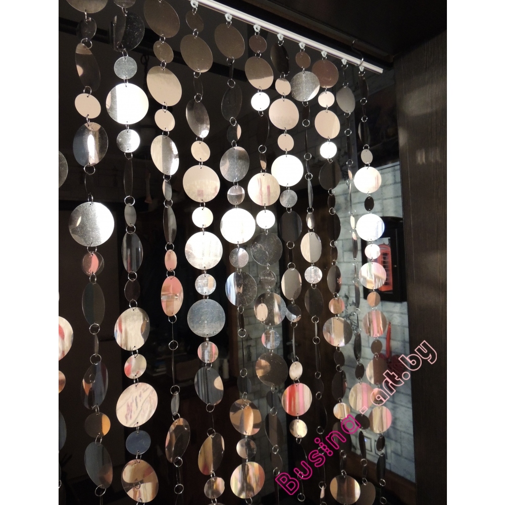 Крепление штор из зеркальных дисков на аллюминиевом карнизе на неподвижных бегунках к потолку - это самый распространенный вариант. Максимальная длина карниза 6 м, делаем любой длины. Есть и другие варианты карнизов . В данном случае Вы получаете штору и карниз, Вам только необходимо закрепить крепеж для карниза и "защелкнуть" в него карниз, потом развесить штору.| Системные параметры | ||